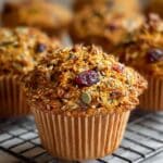 Keywords: Pumpkin Muffins, Healthy Muffins, Multigrain Muffins, Fall Recipes, Seed and Fruit Muffins, Baked Treats, Vegetarian Muffins